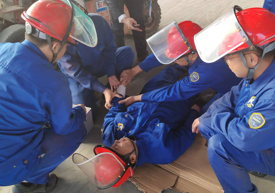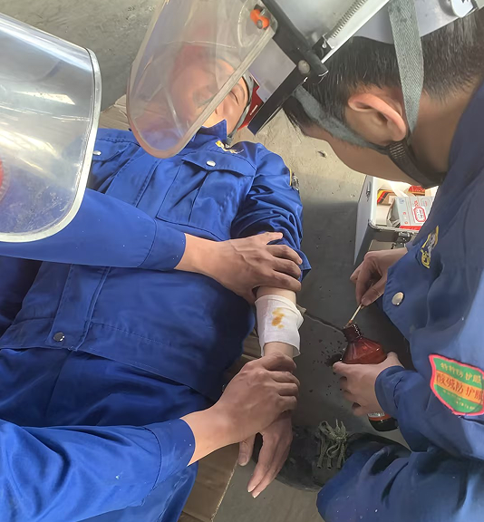 叉車司機(jī)王根立即停止作業(yè),并大喊:“撞人了,撞人了”,周邊同事聽到后,迅速過來幫助受傷人員躺平,并上報(bào)車間主任,車間主任接報(bào)后,立即組織救援人員趕赴現(xiàn)場(chǎng),查看受傷人員傷勢(shì)情況,查看到傷勢(shì)比較嚴(yán)重,立即組織人員進(jìn)行簡(jiǎn)單包扎處理,簡(jiǎn)單處理后,使用擔(dān)架抬傷員到公司車輛并送到醫(yī)院就診。